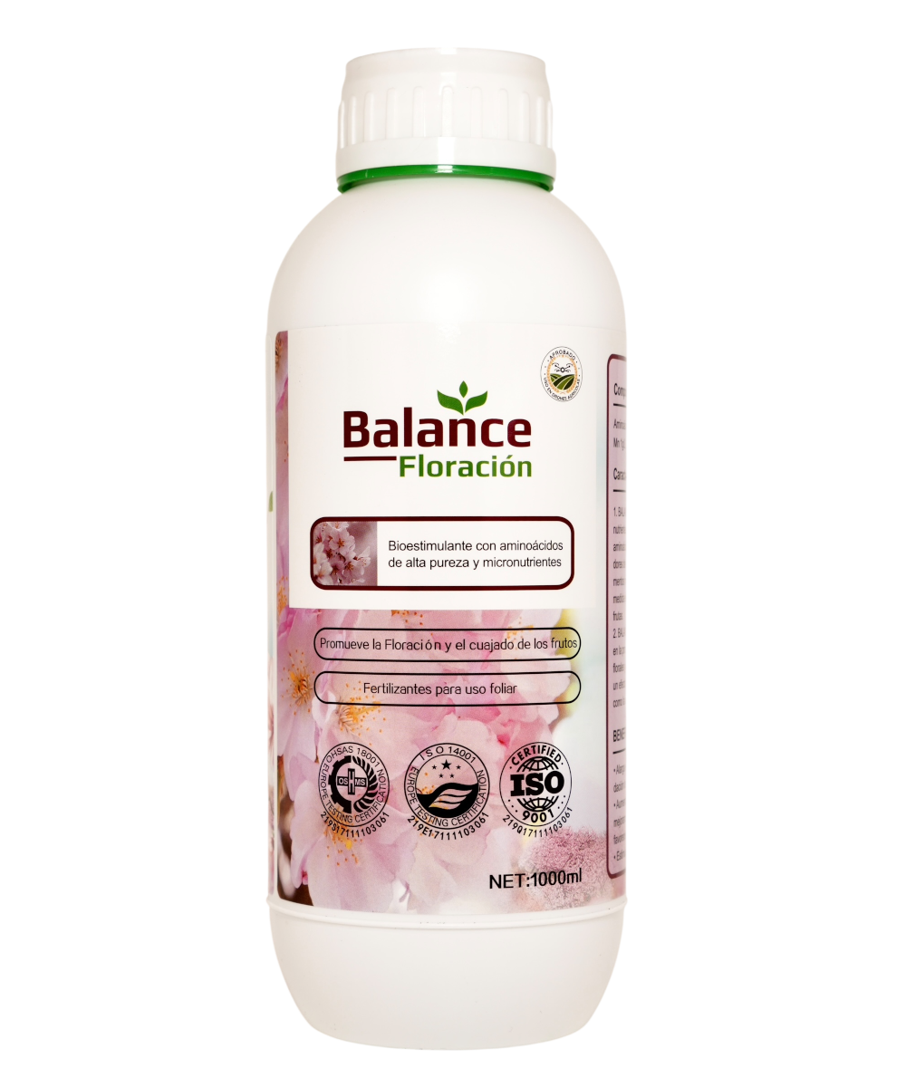 BALANCE FLORACION es una solución de nutrientes para plantas de alta calidad que contiene aminoácidos (polipéptidos) de alta pureza, reguladores del crecimiento de las plantas y microelementos mixtos, que pueden aumentar en gran medida el rendimiento al preservar las flores y las frutas. BALANCE FLORACION tiene un efecto notable en la promoción de la diferenciación de los botones florales y la expansión de los frutos. También tiene un efecto de control sobre enfermedades físicas como la caída de flores y frutos. Envanse:1 Lt y 10 Lt. Dosis: de 0.5 a 2 litros por Hectarea.